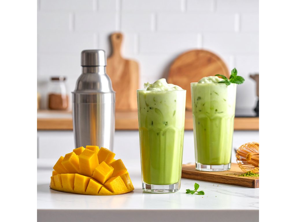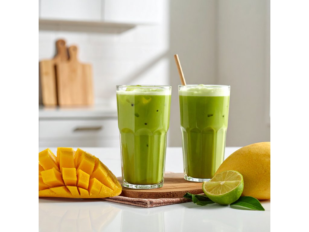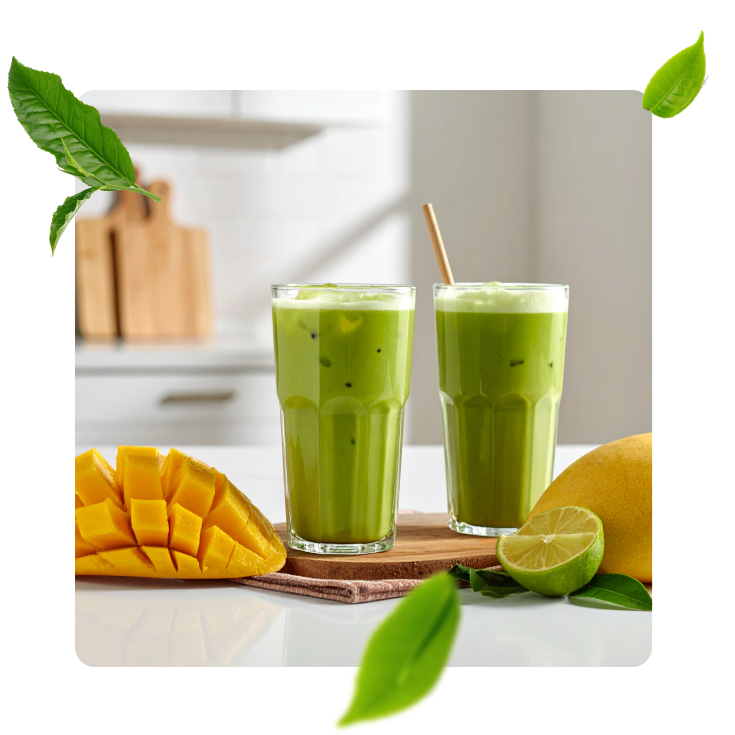 - BIO sušený rýžový sirup, BIO sušená syrovátka, BIO sušené odstředěné mléko, BIO mletý zelený čaj Matcha (4 %), BIO sušené mango (2 %), zahušťovadlo: xanthan, přírodní aroma, protispékavá látka: vinany draselné