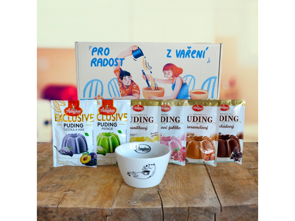 Hledáte vkusný a milý dárek pro někoho blízkého, známého či sobě pro radost? Tato limitovaná sada bude nejen chutnat díky 14 lahodným pudingům z řady Exclusive, ale i potěší stylovou a praktickou miskou. Dárková sada obsahuje: 3x Exclusive puding vanilkový 40 g, 3x Exclusive puding čokoládový 45 g, 2x Exclusive puding granátové jablko 40 g, 2x Exclusive puding švestka a mák 40 g, 2x Exclusive puding s příchutí pistácie 40 g, 2x Exclusive puding karamelový 40 g, 1x miska Amylon s objemem 200 ml.