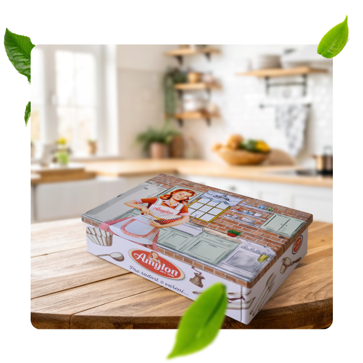 Tato stylová plechová krabička v retro stylu a s Amylonkou potěší a ještě poslouží jako parádní úschovna produktů. Edice je limitovaná, takže kdo zaváhá, má smůlu.